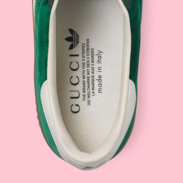 Make a bold statement with the Adidas x Gucci Gazelle Green Sneakers, a striking fusion of Adidas’ iconic athletic style and Gucci’s high-end luxury. These vibrant green sneakers feature premium materials, the signature Gazelle silhouette, and dual branding that represents the best of both worlds. Perfect for those who want to stand out, these sneakers bring unmatched style and comfort to any outfit, whether you’re dressing up or keeping it casual.