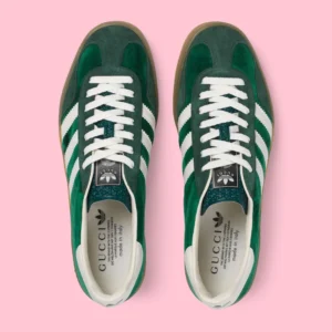 Make a bold statement with the Adidas x Gucci Gazelle Green Sneakers, a striking fusion of Adidas’ iconic athletic style and Gucci’s high-end luxury. These vibrant green sneakers feature premium materials, the signature Gazelle silhouette, and dual branding that represents the best of both worlds. Perfect for those who want to stand out, these sneakers bring unmatched style and comfort to any outfit, whether you’re dressing up or keeping it casual.