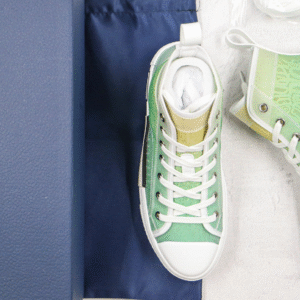 The B23 League high-top sneaker is set apart by its layering of transparent paneling and white and black Dior Oblique canvas. Essential details, such as eyelets and a lace-up front, a white rubber sole, a rounded and reinforced toe as well as a rear tab recall the codes of the classic high-top style. The sneaker is further enhanced with contrasting details on the sides, including a Dior signature, and pairs easily with any casual outfit.