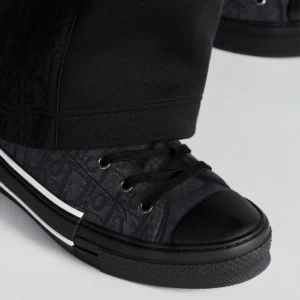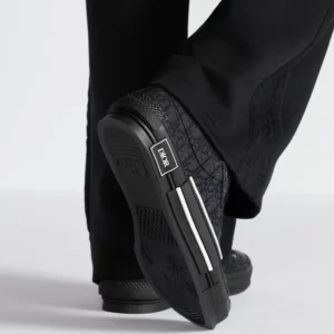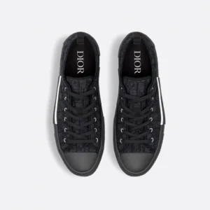 The B23 League low-top sneaker showcases black Dior Oblique jacquard. Timeless sneaker elements, such as eyelets and a lace-up front, a black rubber sole with tonal panels, a rounded and reinforced toe as well as a rear pull tab, are all completed with technical fabric lining. The sneaker will pair well with any casual outfit.