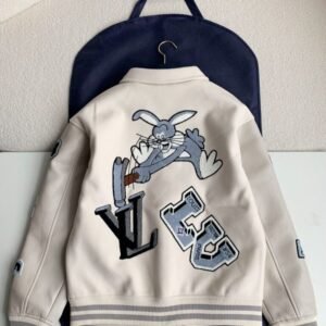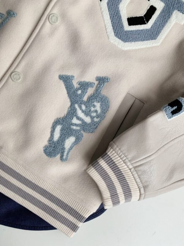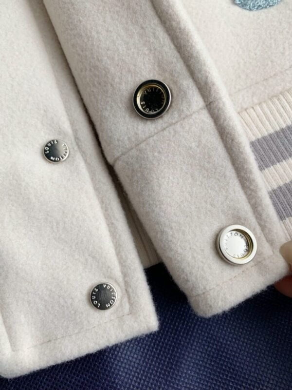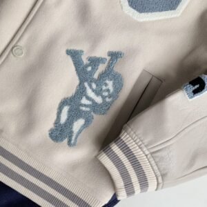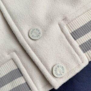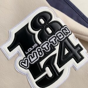 Elevate your style game with the Louis Vuitton FW22 Varsity Jacket, a piece that merges high-end flair with that iconic college vibe. Constructed from a premium wool body and faux leather sleeves, it brings together comfort and structure effortlessly. The snap-button front keeps things traditional, while the off-white color adds a clean, standout finish that fits both street-ready and upscale fits.