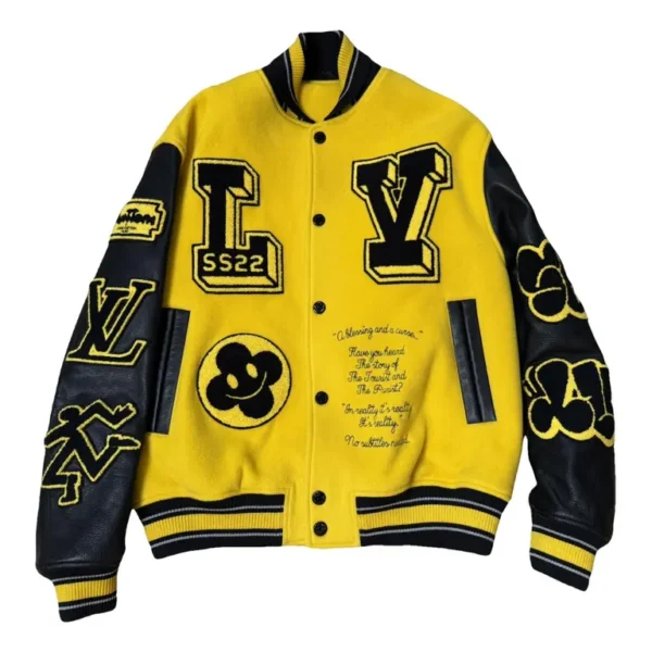 Louis Vuitton Leather Embroidered Varsity Jacket Black & Yellow – a varsity jacket with a bold streetwear DNA combined with luxury.