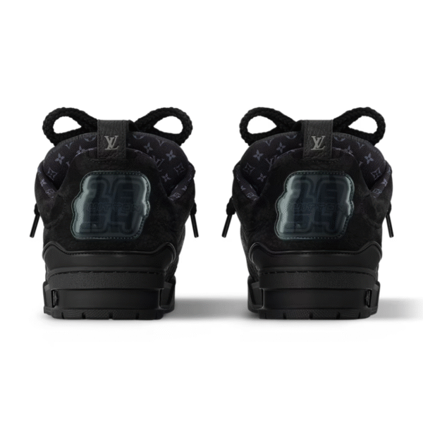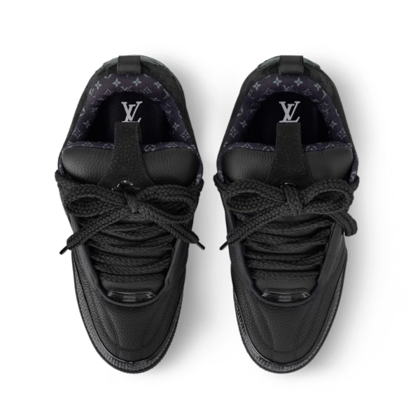 The LV Skate sneaker in grained calf leather draws inspiration from Nineties’ skate shoes. Key features of this model are the exaggerated, padded collar and the technical rubber outsole adapted from the LV Trainer sneaker. Distinctive details include the large Monogram Flower on the side and the Vuitton since 1854 signature on the back.