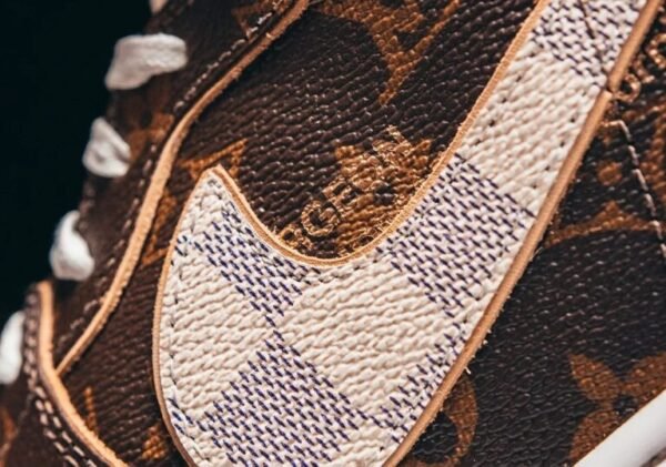 The Shoe Surgeon has revealed a custom Air Jordan 1 sneaker, designed as a tribute to Virgil Abloh‘s capsule of Louis Vuitton and Nike Air Force 1 sneakers featured in the label’s spring 2022 collection. Dubbed the J1 High and Low Legacy, the shoe is crafted from authentic Louis Vuitton Damier and logo bags while a raw edge underlay echoes the original design’s piping detail. Paired with a leather orange luggage tag, gold foil logos peek on the lateral side and heel adding depth and dimension.