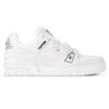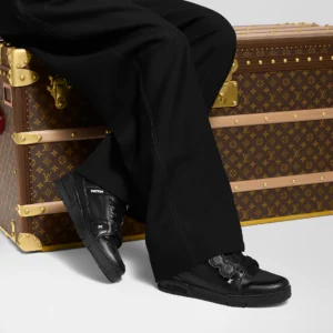 This exclusive edition of the LV Trainer sneaker celebrates the collaboration between Pharrell Williams and Nigo for the Louis Vuitton Fall-Winter 2025 men’s show. The upper, in smooth calf leather, is embellished with a tag featuring the designers’ initials in studs, while the back of the sneaker is embossed with their profiles. Rubber LV Initials and Vuitton signatures complete this striking design.