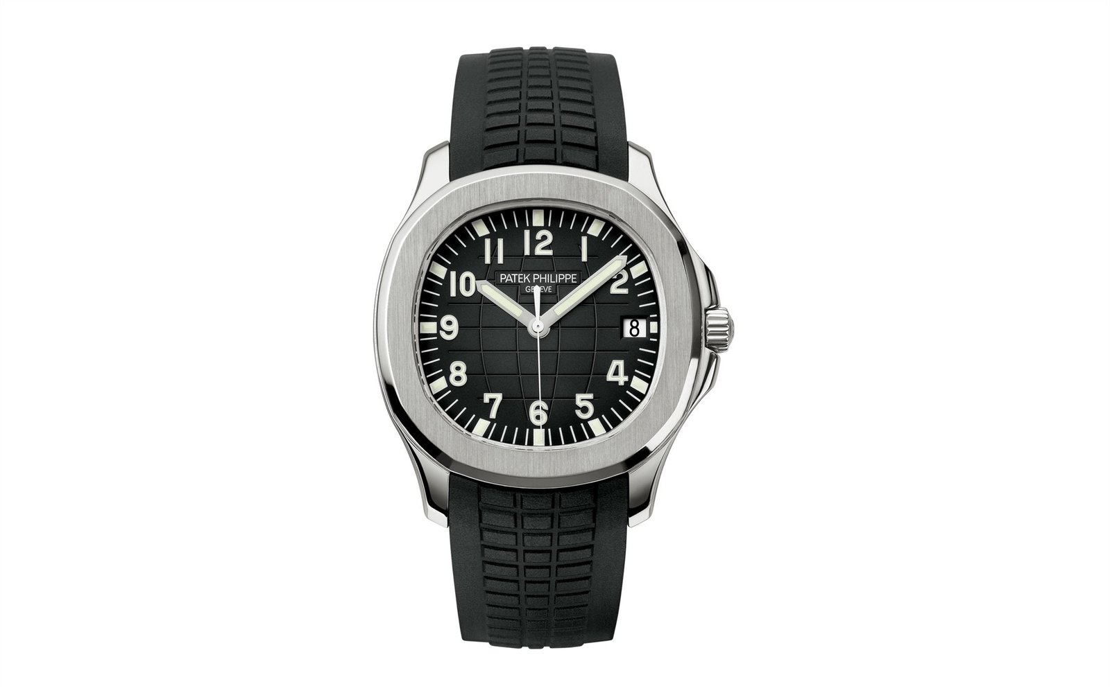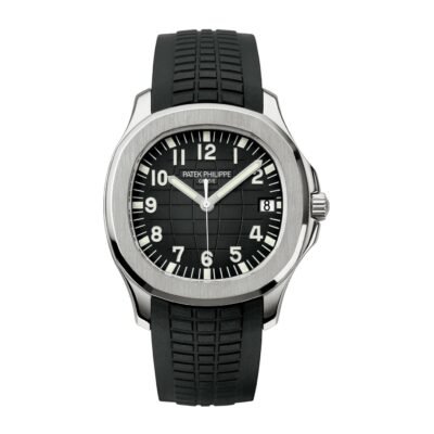 New Patek Philippe Aquanaut Luxury Sports Watch, Date Sweep Seconds, 40,8mm, Stainless Steel, Ref. 5167A-001 – reliable and practical, modern and somewhat unexpected, inspired by Nautilus. Their Stainless Steel case features a rounded octagon that is unmistakable. A beautiful black embossed dial looks harmoniously with perfectly readable large applied 18k White Gold Arabic numerals with luminescent coating. Around the outer rim, there are large silver minute markers with fairly wide, luminous every 5 minutes. The time is shown by large stick-shaped hour and minute hands made of 18k White Gold with luminescent coating, as well as a thin and elegant second hand (Sweep Seconds). Date indicator in an aperture traditionally located at the 3 o’clock position. A polished Stainless Steel screw-down crown with a ribbed edge for a comfortable grip and the Patek Philippe logo create a naturally balanced watch. The dial closed by a Scratch-resistant Sapphire Crystal. Sapphire-crystal too case back, which allows of the case, allows you to see the magical work of the movement. Against this backdrop, the fixed Stainless Steel bezel stands out, from satin on the front and polished on the sides, provides a wide view of the dial. The Model has Patek Philippe Caliber 26‑330 S C, with a self-winding mechanical movement containing 30 Jewels, with a power reserve of min. 35 hours – max. 45 hours. This beautiful sporty-chic watch is presented on a black tropical rubber strap made from a new composite material that is ultra-resistant to wear, salt water and UV radiation. It fastens with Patek Philippe’s patented stainless steel Aquanaut folding clasp, which has a polished surface and is engraved with the Calatrava Cross. Opening the clasp reveals an engraved Patek Philippe logo with the word GENEVE. Water resistant up to 120m/394ft (12 ATM).