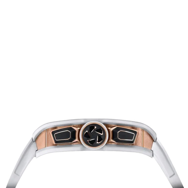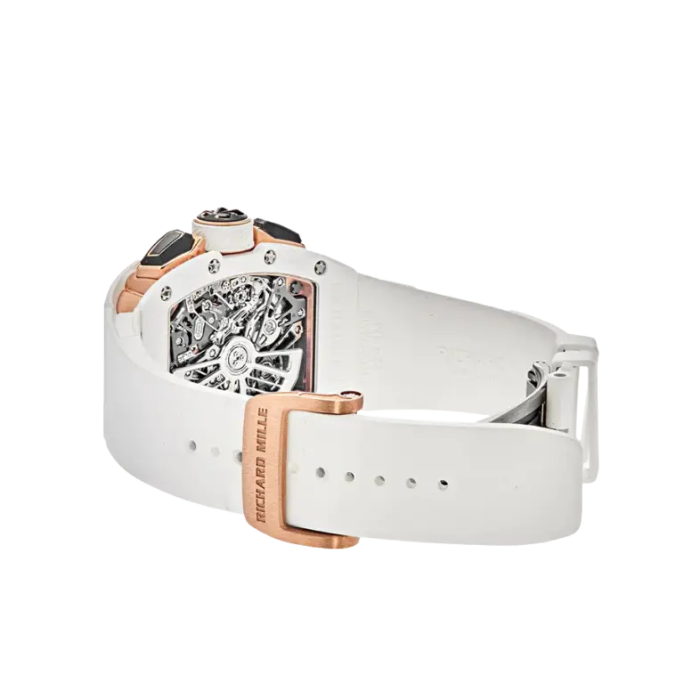 The RM 72-01 Lifestyle In-House Chronograph, launched in 2020, is the first Richard Mille watch to boast an automatic movement with a flyback function developed entirely in-house. Originally crafted in gold or titanium, the watch is now available in black TZP or white ATZ ceramic (38.40 x 47.34 x 11.68 mm).