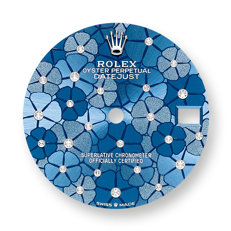 - Dial color: Azzurro blue dial with floral motif and 24 Diamonds in 18k White Gold settings