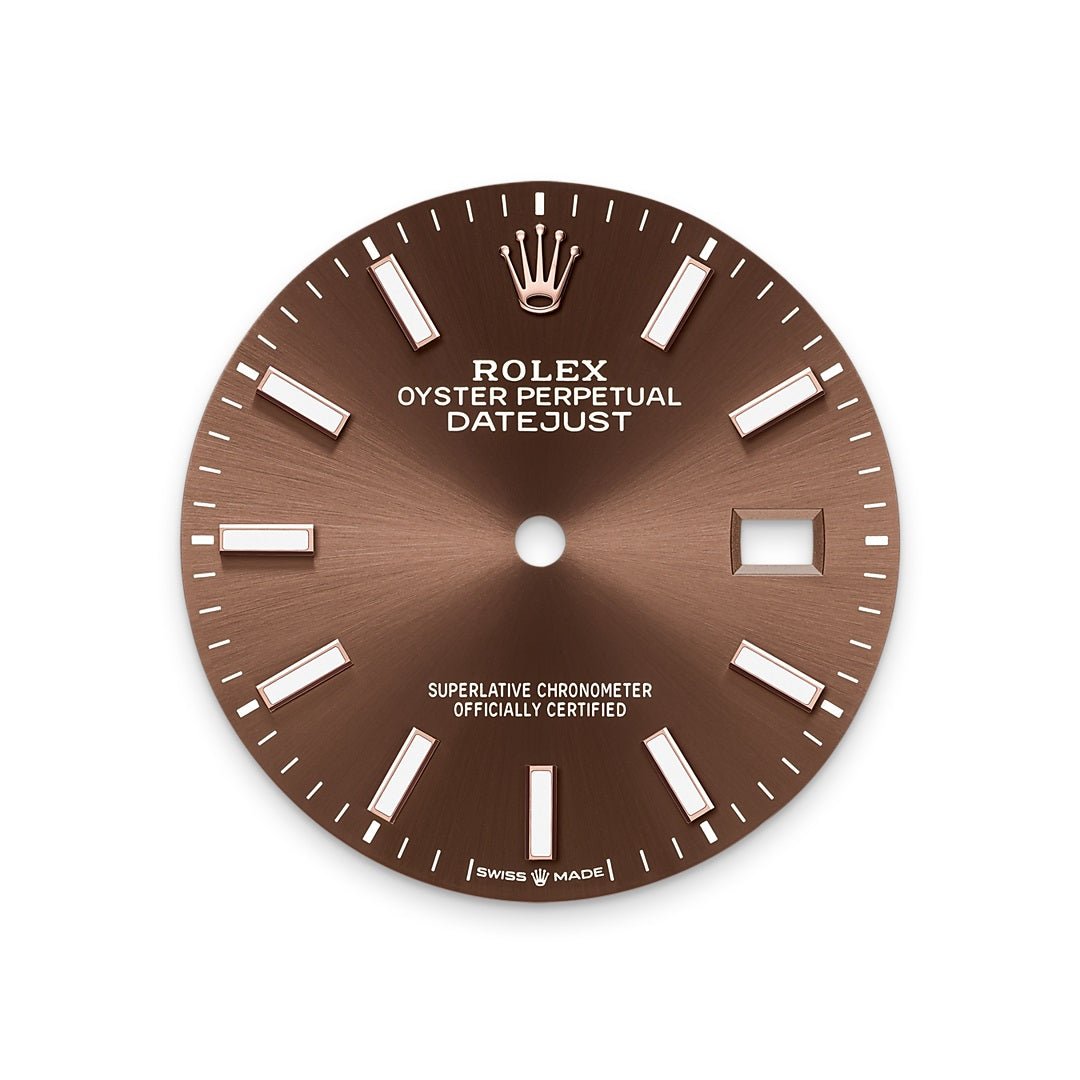 Unworn Rolex Datejust 126201-0044. 36 mm. Chocolate Dial. Domed Bezel. Scratch-resistant sapphire, Cyclops lens over the date Crystal. Oystersteel and Everose gold Case. 3235 Calibre. Perpetual, mechanical, self-winding Movement. 70 hours Power reserve. Oystersteel and Everose gold bracelet with Folding Oysterclasp. 100 metres / 330 feet Water resistance.